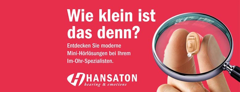 HANSATON ist der Überzeugung: Besseres Hören und leichteres Verstehen gibt vielen Menschen die Chance auf ein erfüllteres Leben. Seit 1957 begeistern wir unsere Kunden mit innovativen Konzepten und zukunftsweisenden Hörsystemen. Wir setzen Visionen um, die stets auf dem neuesten technologischen und audiologischen Stand sind. Um Ihnen ein optimales Hör-Erleben zu ermöglichen, legen wir großen Wert auf die Zusammenarbeit mit Ihrem Akustiker. Mit seinem Können und seiner Erfahrung beantwortet er all Ihre Fragen und hilft Ihnen bei der individuellen Anpassung Ihres Hörsystems.