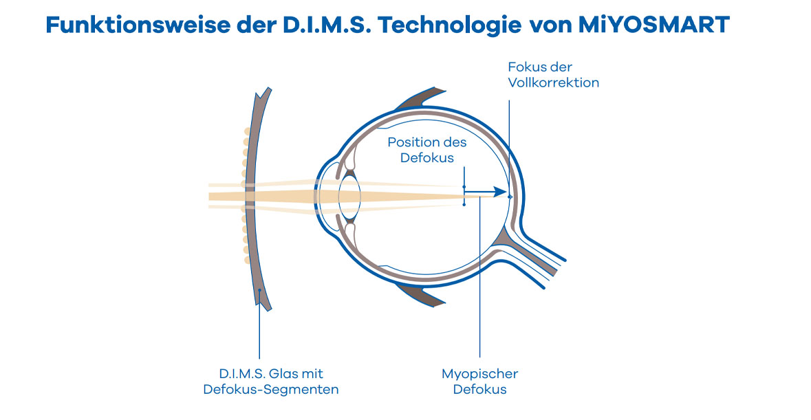 randomised clinical trial. British Journal of Ophthalmology. OnlineErscheinungsdatum: 29. Mai 2019. doi: 10.1136/bjophthalmol-2018- 313739 // Die genannte 60%-Verlangsamung der Myopie bezieht sich auf das unverhältnismäßige Augenwachstum im Vergleich von D.I.M.S. Gläsern zur Kontrollgruppe mit Einstärkenbrillen. Dies wurde im Durchschnitt bei allen Kindern, welche die 2-jährige placebo-kontrollierte randomisierte Doppelblindstudie beendet haben, festgestellt. In die Studie wurden 160 chinesische Kinder zwischen 8 bis 13 Jahren mit einer maximalen Myopie bei Beginn der Studie von weniger als -5.00 Dioptrien inkludiert. Der Verlangsamungseffekt auf die Myopie-Progression bei einer hochgradigen Myopie über -5.00 Dioptrien wurde nicht überprüft